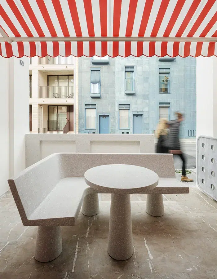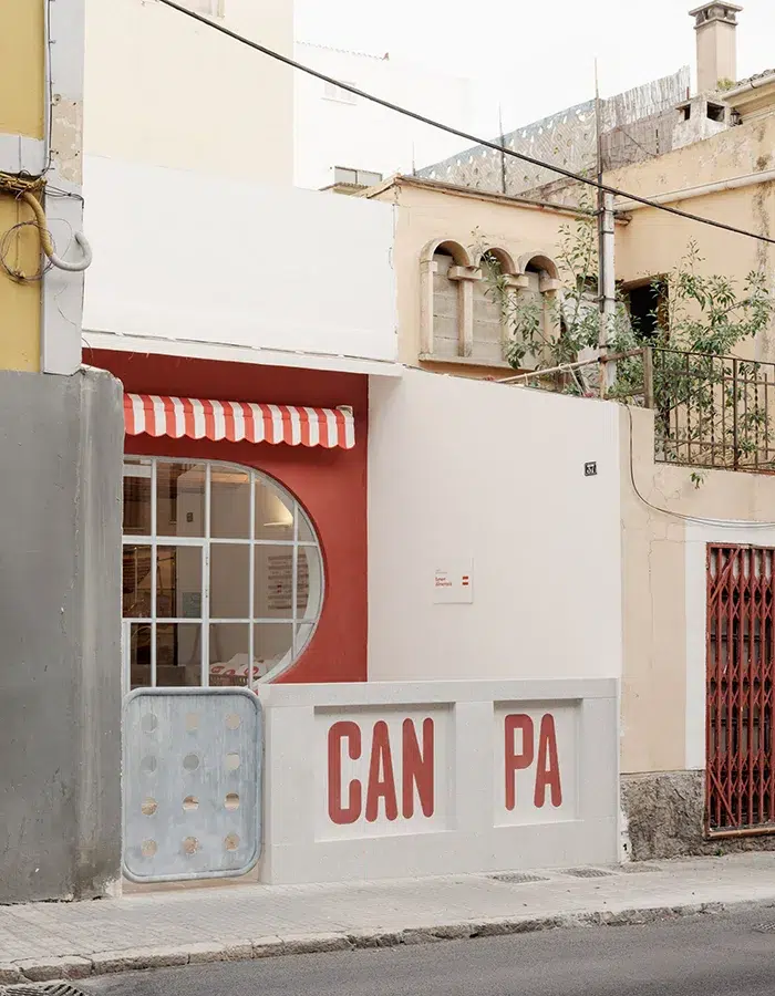 À Majorque, Can Pa fait sensation avec son apparence minimaliste, colorée et intimiste. Une grande fenêtre ovale accueille toute la luminosité nécessaire pour cette petite boulangerie. La superficie du lieu contraste avec l’imposante architecture du quartier. Elle a des airs de petite maison avec son portail et son unique table dans la cour. Can Pa accueille ses clients de manière chaleureuse comme s’ils rendaient visite à une grand-mère.