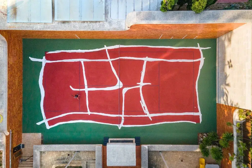 Malgré son caractère expérimental, la Casa Axis n’est pas un simple manifeste artistique. C’est aussi un lieu de vie, pensé pour être traversé, pratiqué, utilisé. Cette tension entre quotidien et abstraction est au cœur du projet. Le terrain de sport, la piscine, les espaces de repos ou de circulation deviennent des œuvres fonctionnelles, brouillant la frontière entre art et usage. Cette hybridation pose une question essentielle : peut-on vivre dans une œuvre d’art sans la figer ? La Casa Axis répond par l’affirmative, en faisant du mouvement, du corps et du temps des éléments constitutifs de l’œuvre elle-même. Certains espaces ont été pensés en collaboration avec des artistes, tel le terrain de tennis qui est devenu le projet de Lucas Benarroch.