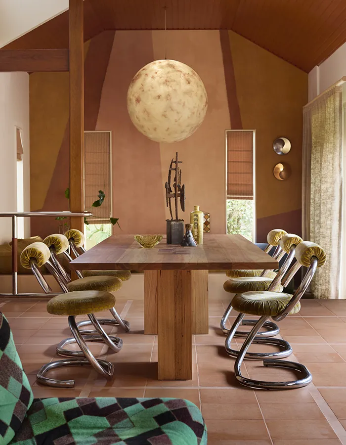 Les deux maisons vibrent aux couleurs du monde, chacune s’inspirant d’un style éclectique et non codifié. On pourrait penser à une décoration hybride, où la singularité des matériaux se mêle à l’audace chromatique. Malgré leurs ambiances différentes, elles naissent toutes deux d’un même tissage de goûts, de parcours et d’histoires, donnant vie à des intérieurs profondément personnels.