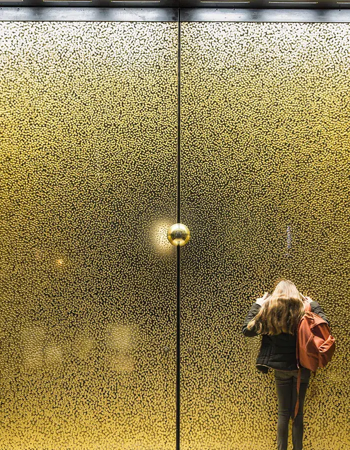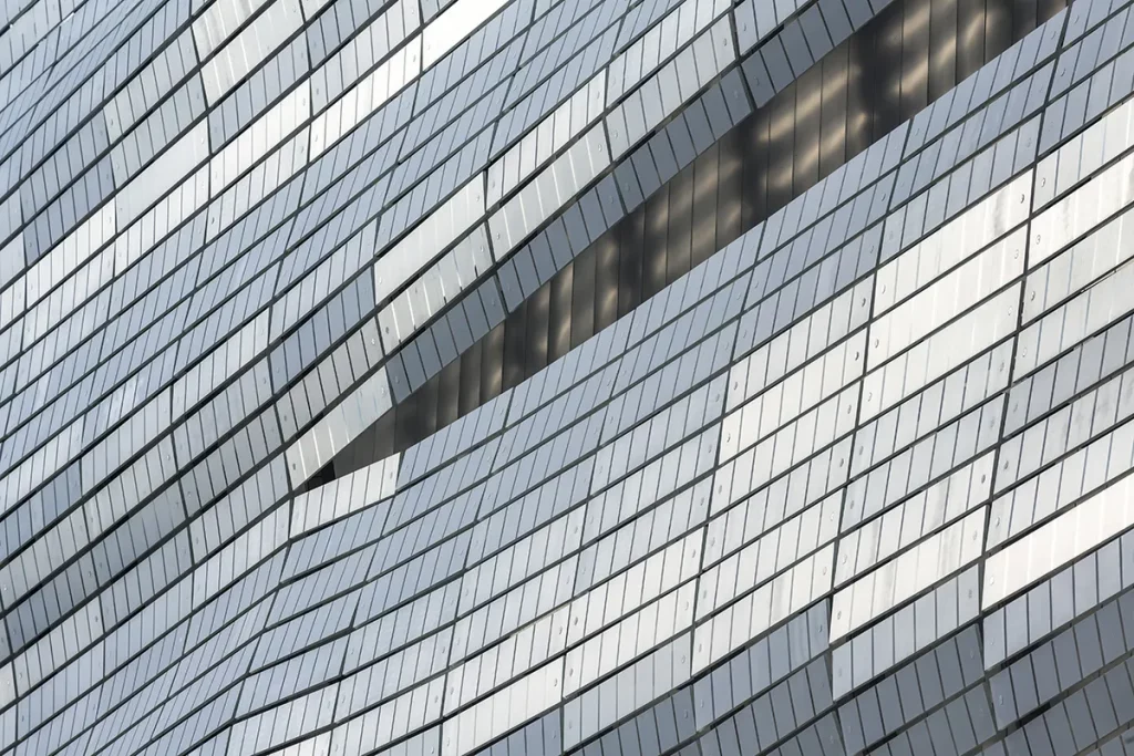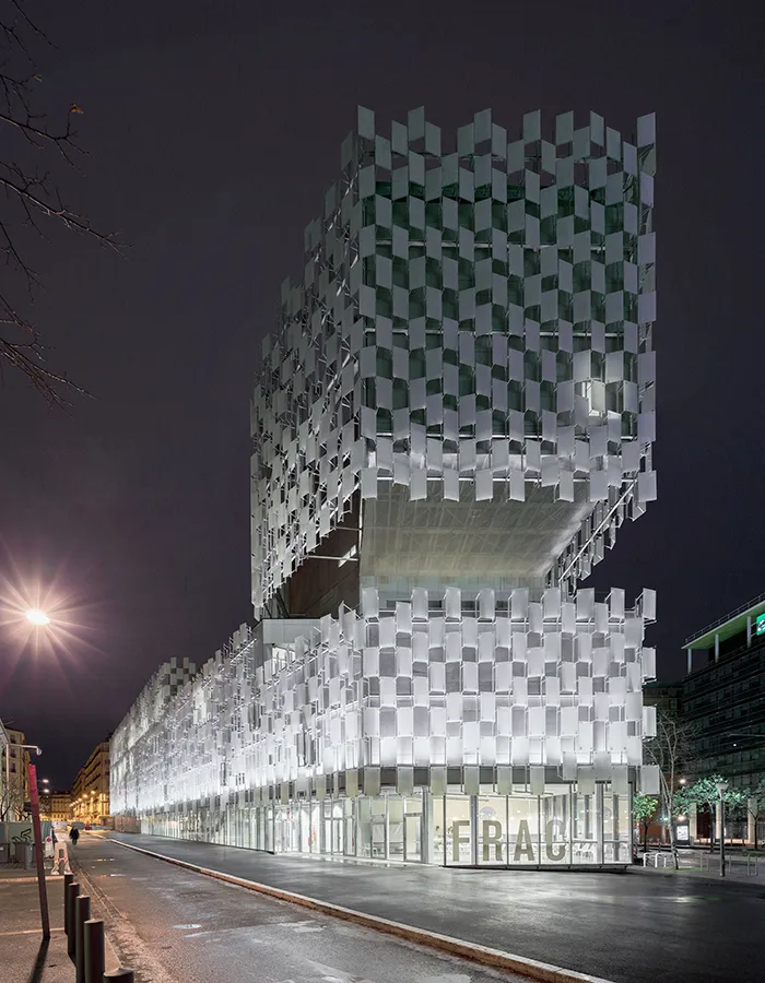 Le projet du FRAC Provence-Alpes-Côte d’Azur à Marseille, réalisé en 2013, apparaît comme l’un des révélateurs les plus clairs de cette démarche. Conçue avec l’architecte Kengo Kuma, la façade du bâtiment est pensée comme une peau de verre composée d’«écailles blanches ». Vu de loin, l’ensemble semble homogène, presque textile. Mais lorsqu’on s’en approche, chaque panneau révèle son unicité, ponctué d’une multitude de points d’émail blanc. Pour Kengo Kuma, ces points évoquent autant de photons constituant la lumière méditerranéenne : une lumière à la fois unique et multiple. Le verre n’est plus ici un simple matériau de surface ; il devient un dispositif capable de traduire une atmosphère et d’inscrire l’architecture dans son contexte lumineux et climatique.