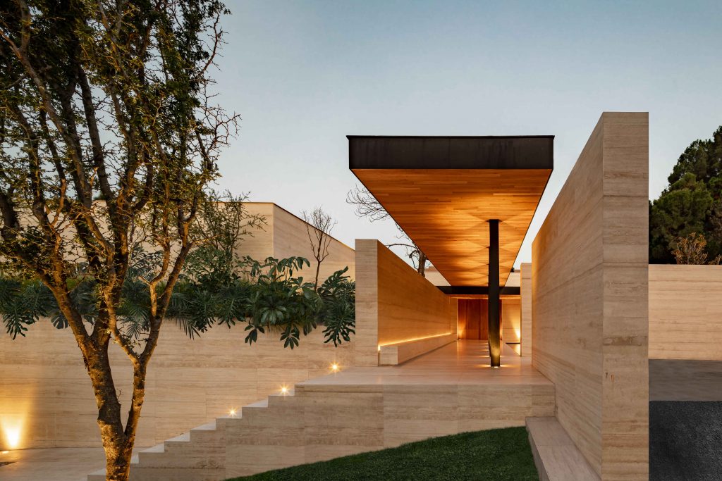 La Stone House (Casa de Piedra), nichée sur une colline, offre une vue panoramique sur Monterrey. Volume des espaces, géométrie et chevauchement des murs, reflets et sons des plans d’eau constituent cette maison moderniste développée sur un seul étage et recouverte d’un toit en noyer. Elle est l’œuvre du cabinet d’architecture Taller ADG, basé à Mexico, qui a collaboré avec l’architecte d’intérieur Micaela de Bernardí. Ensemble, ils se sont inspirés du travail de Luis Barragán à travers une synthèse de l’espace, de la lumière et des matières, avec ces plafonds en bois qui rendent hommage aux traditions vernaculaires du Mexique. Au centre de la demeure se trouve une grande cour, avec une fontaine, des magnolias et une sculpture de l’artiste chinois Ai Wei Wei, générant un environnement subtil propice à la contemplation. Les fluctuations du climat de la région se reflètent également dans le choix des matériaux : le travertin clair et frais contraste avec la chaleur du bois.
