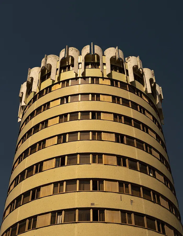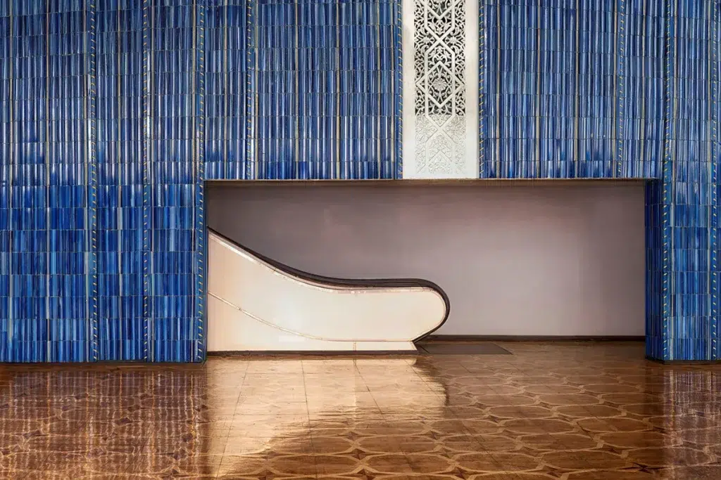 Depuis le milieu des années 1950, le modernisme à Tachkent se manifeste partout dans la ville, que ce soit dans le métro, au coin des rues ou sur les façades. Le courant architectural se détache de la tradition pour évoluer en un style progressiste, aux formes cubiques et tridimensionnelles, souvent répétitives, qui créent un effet visuel à la fois minimaliste et grandiose. Les couleurs dorées et les formes géométriques contrastent avec l’architecture traditionnelle, donnant naissance à un paysage urbain à la fois étonnant et séduisant.