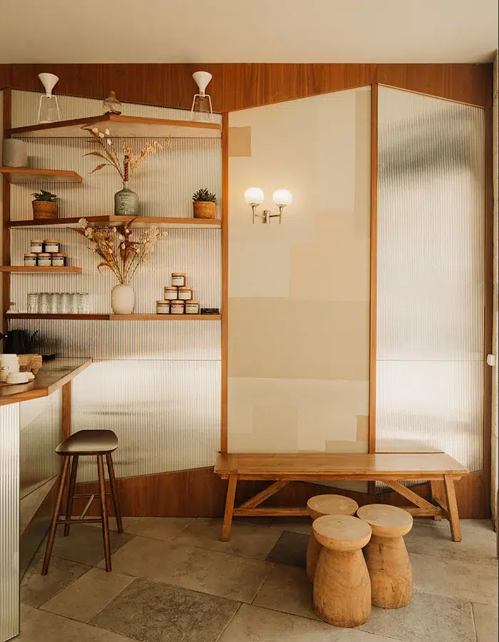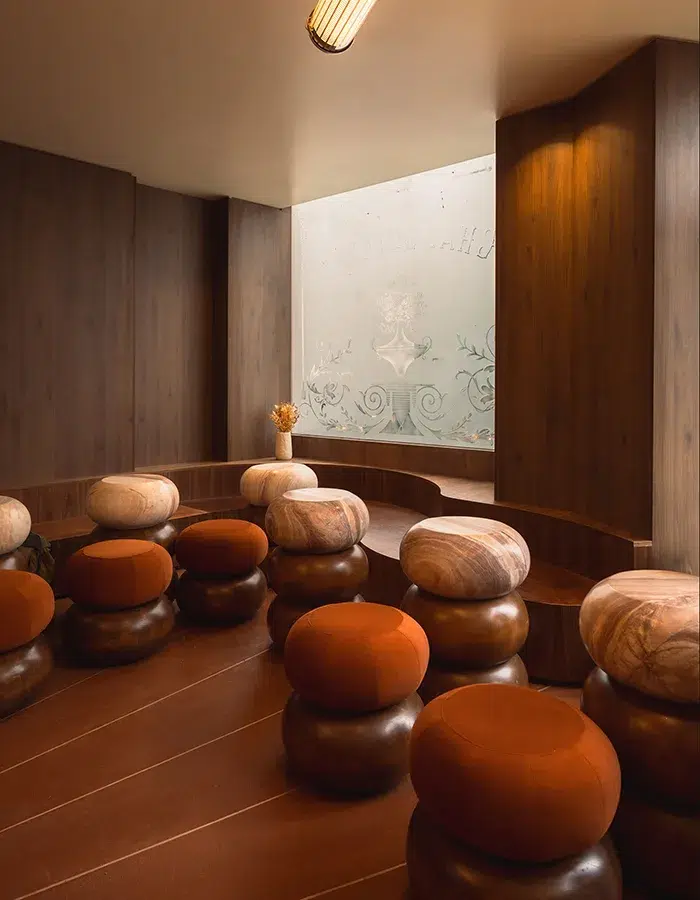 Au 51, rue des Francs-Bourgeois, en plein cœur du Marais, Café Nuances impose sa présence avec un minimalisme incandescent. Conçu par Harry Nuriev du Crosby Studios, le lieu s’inspire du nouveau réalisme. Les murs se parent d’un orange vibrant qui se module au fil de la journée, tandis que les assises et comptoirs évoquent le plissé singulier de gobelets compressés. Ici, le design est matière première : inox et lumière saturée créent une scénographie où le latte choco-coco ou le matcha au jasmin deviennent partie prenante de l’espace. Plus qu’un coffee shop, c’est une installation urbaine, où l’on savoure autant l’esthétique que les boissons.