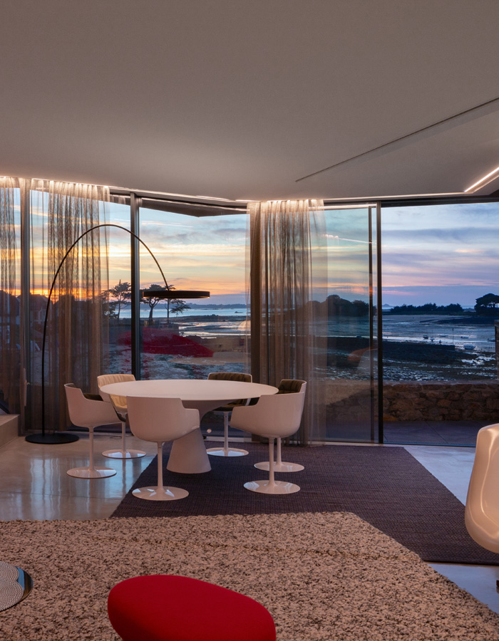 L’architecte française s’est saisie d’un fortin, un petit édifice de fortification sur la côte nord de la Bretagne, logé à l’extrémité d’une pointe rocheuse face à l’océan. Réaménager l’édifice pour dégager au mieux son espace intérieur, tout en lui redonnant plus de vue sur l’extérieur, intervenir sans dénaturer le site, « Tout voir mais n’être que deviné », tels étaient les nombreux objectifs d’Odile Decq pour ce projet résidentiel situé dans le Finistère.