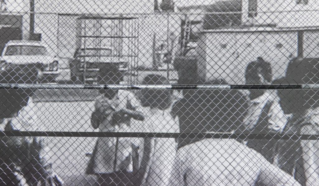 © Video, black-and-white, sound, chain-link fence; 8′38″; Dimensions variable; Edition of 3 + 1 AP