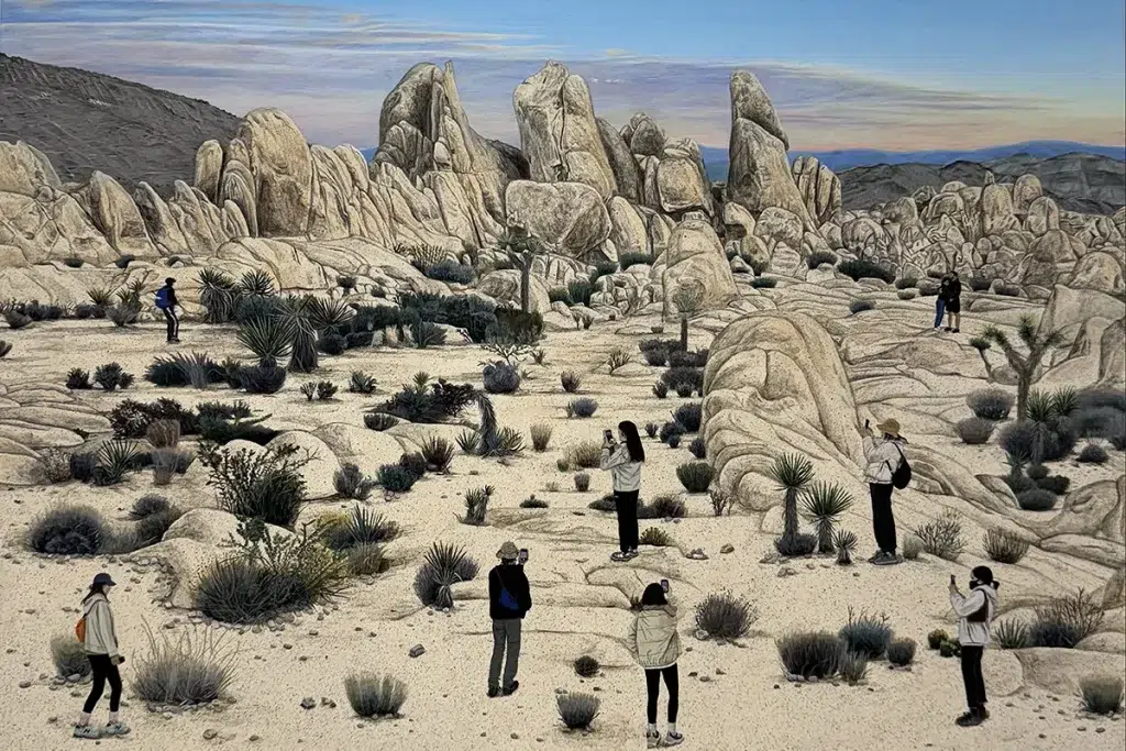 L’exposition déjoue les attentes. Si de nombreuses toiles dépeignent des scènes familières de la vie urbaine, d’autres s’aventurent vers des territoires inattendus : un plateau de cinéma, un fossile ancien, voire des espaces de pure fiction. Chaque artiste, de Kirsten Everberg à Paige Jiyoung Moon, en passant par Robert Gunderman et Manuel López, apporte sa propre réponse à une question simple : que signifie peindre à Los Angeles aujourd’hui ?
