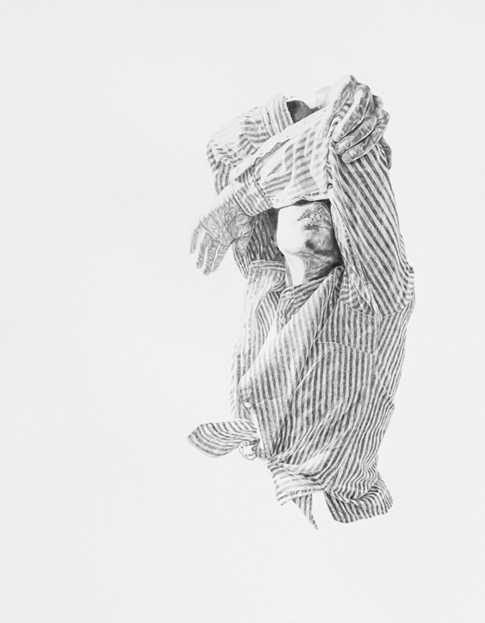 « Bacon disait qu’il utilisait des cadres pour concentrer l’intensité. […] Je pense que l’art est une intensification du réel. […] Ce qui compte, c’est l’équilibre général du tableau », explique l’artiste lauréate de la bourse Révélations Emerige 2022, qui, jouant des oppositions et des contradictions (entre les teintes sourdes et silencieuses du fusain et la vibrance des bâtons d’huile, le figuratif et l’abstrait…), n’hésite pas à remplacer une tête par un cercle mauve…