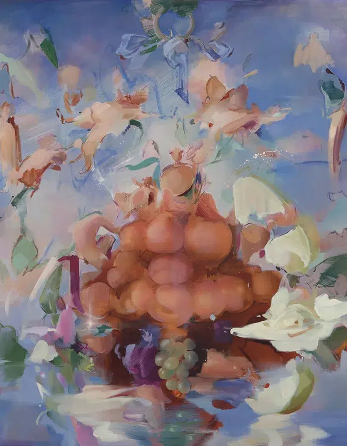 Cette exposition s’inscrit dans un moment essentiel de son parcours, alors que sa présentation « Four Seasons » prend place au Frick Collection à New York, en dialogue intime avec François Boucher. Flora Yukhnovich poursuit ainsi sa discussion singulière avec l’histoire : non pas comme un héritage, mais comme une matière vivante, mouvante, toujours prête à être réinventée. Dans « Bacchanalia », elle montre que la peinture peut encore être un lieu d’ivresse, d’énergie, d’apparitions, et qu’au cœur du tumulte, quelque chose continue pourtant de vibrer – fragile, somptueux, indompté.