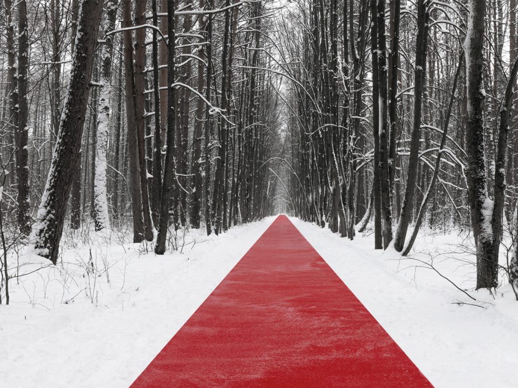 Cette oeuvre à grande échelle préserve ainsi cette sensation d’espace et de réalité dans laquelle le maître du Carré noir a vécu les derniers moments de son existence. Pour Nowhere, Gregory Orekhov explore la notion de tapis rouge via une ligne en polypropylène qui s’étend sur 250 m dans une forêt enneigée. Tout au long de l’histoire, ce symbole cérémoniel a accueilli dirigeants et royautés, chefs d’État et célébrités. Il incite ici le visiteur à endosser « le rôle d’un souverain », tout en soulignant que « le désir de gloire, de richesse et de pouvoir est insignifiant lorsqu’il s’agit de la grandeur de l’Univers et de la nature ». Sa réflexion est poussée plus loin encore : avec cette ligne rouge, comme « interdite » et « qu’il ne faut pas franchir », il dresse un parallèle avec l’actualité et les « violations de frontière », de plus en plus « mobiles ». Il nous invite à la franchir, pour permettre de redessiner les limites de ce qui est acceptable.
