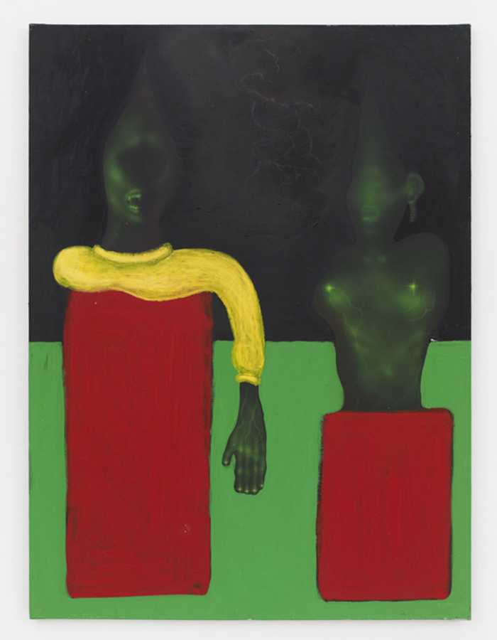 Au deuxième étage, My dear (2023) trône dans un temple divin. Sous une table à manger nappée de blanc, les deux grandes pattes d’un chat siamois s’apprêtent à bondir sur leur proie. Sur les murs des deux niveaux, de nombreuses peintures ornent l’espace, comme Sacred Pit (2021) et Mars (2021). Semblables à des spectres, les créatures surnaturelles du peintre font régner la terreur au sein de la fondation.