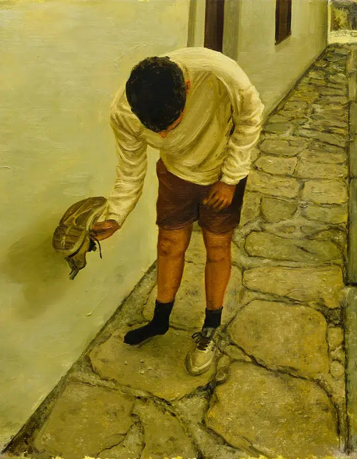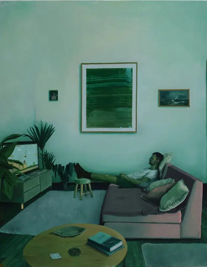 Adriel Visoto exploite l’intimité, et le quotidien à travers un prisme restreint : le cadre domestique. Les peintures évoquent, en quelque sorte, un instant de confessions dans lequel des individus, souvent des hommes, sont touchés par la solitude.