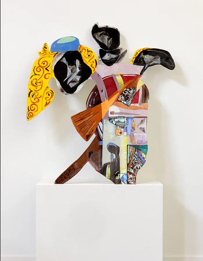 La seconde artiste féminine est Ana Navas. Elle explore l’art du collage avec un matériau particulier : le verre. Sa série « Amulet » est visuellement vibrante et abstraite. L’artiste s’inspire des langages visuels de Wassily Kandinsky et Georgia O’Keeffe pour créer des oeuvres énigmatiques mais plaisantes grâce aux couleurs, à la texture, aux reflets et à la forme.