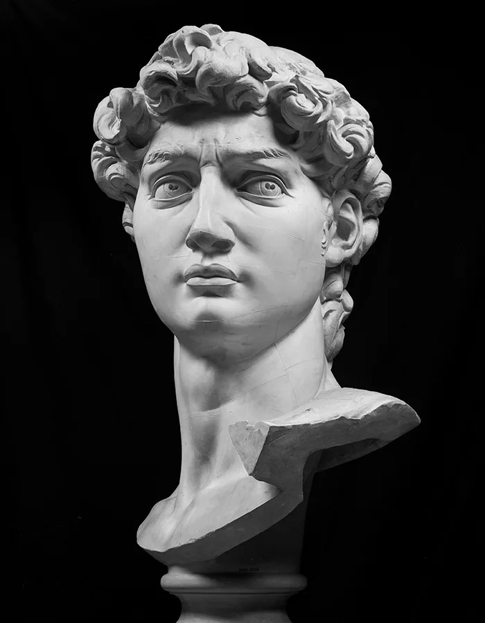 La statue de David à Florence en marbre de Carrare, de 4,35 mètres de haut, reste l’un des symboles de beauté et de sagesse, de volonté et de courage dans ce défi contre le géant Goliath. Une représentation allégorique exemplaire de sa capacité à surmonter les obstacles et à révéler la puissance de l’art.