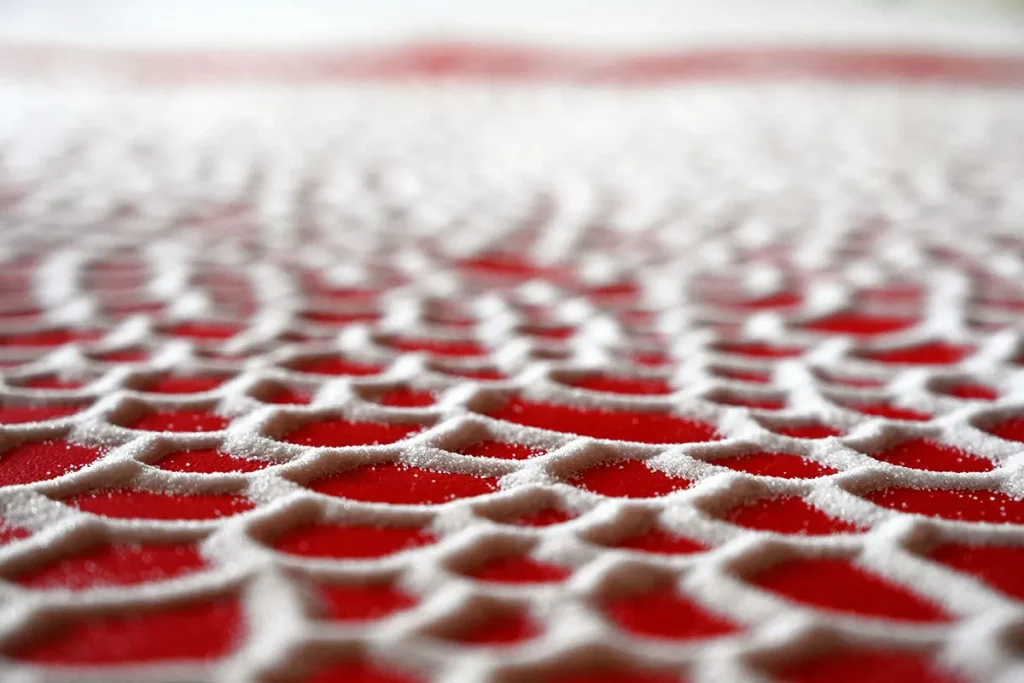 « Comment dire au revoir à quelqu’un que l’on aime ? Comment pouvons-nous accepter la séparation avec un être cher d’une manière qui a du sens ? », s’interroge Motoi Yamamoto. La perte de sa sœur, puis celle de sa femme, l’ont poussé à trouver le moyen de transcender la douleur pour parvenir à accepter la mort. Si la tradition japonaise fait intervenir le sel dans les rites funéraires bouddhistes, en vertu de la croyance en sa capacité à purifier les esprits, c’est pour sa couleur immaculée, porteuse de douceur, que Motoi Yamamoto l’a choisi. « Pour moi, les cristaux de sel absorbent le chagrin », confie l’artiste, pour qui ils représentent également un « souvenir de la vie ». Il a donc imaginé son propre rituel, convoquant ses souvenirs et la mémoire de ses proches. Depuis près de vingt-cinq ans, assis sur le sol pendant des heures, des jours, voire plusieurs semaines, il dessine des labyrinthes et des paysages mentaux donnant forme à ses pensées.