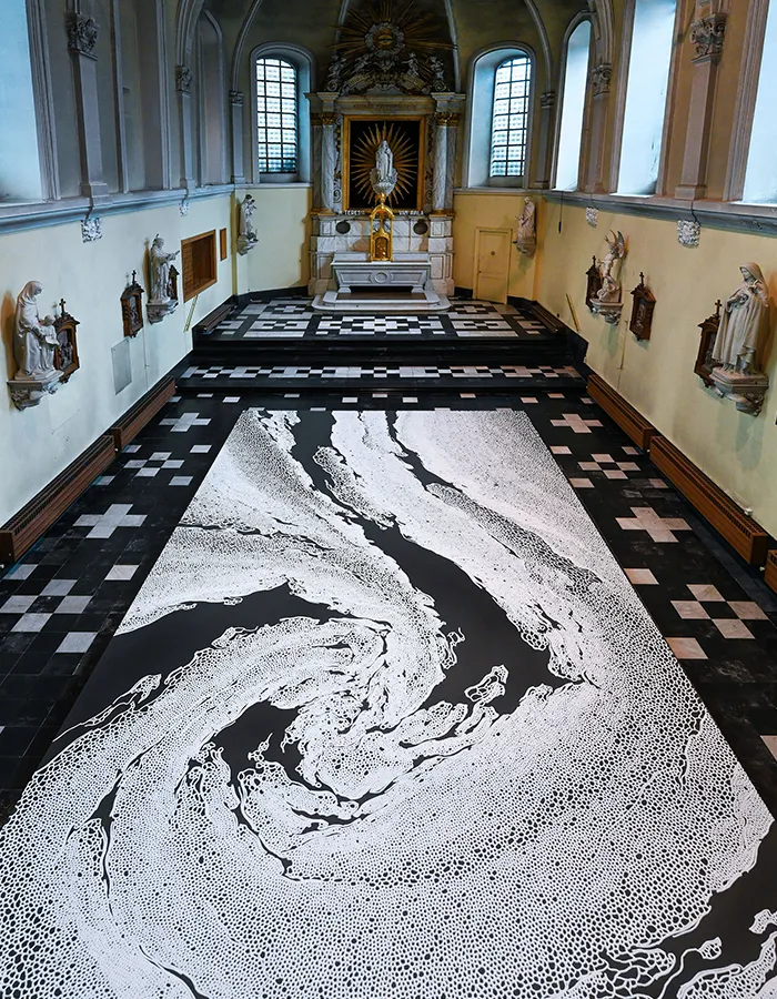 Ses installations de cristaux salés sont des chefs-d’œuvre de résilience, dont la beauté hypnotique se double d’une lutte symbolique contre l’oubli. L’artiste dessine un souvenir de la vie, transfiguré par la pureté, la blancheur et la transparence du matériau.