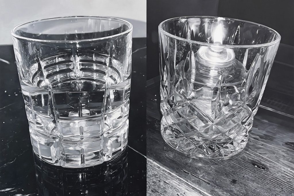 C’est quant à lui la tradition de la nature morte, et plus précisément du trompe-l’oeil, que convoque le peintreanglais James White dont la galerie Thomas Zander (Cologne) présentait une peinture de verres à whisky plus vrais que nature. S’ingéniant à rendre les moindres reflets des surfaces à facettes dans de prodigieux dégradés de blanc et de noir, l’artiste nous prend au piège de nos mirages quotidiens. Tout aussi bluffants, les faux miroirs embués laissant entrevoir des portraits floutés peints à l’huile sur toile d’Anne Imhof (Untitled (Sihana), 2023, à la galerie Buchholz de Berlin).