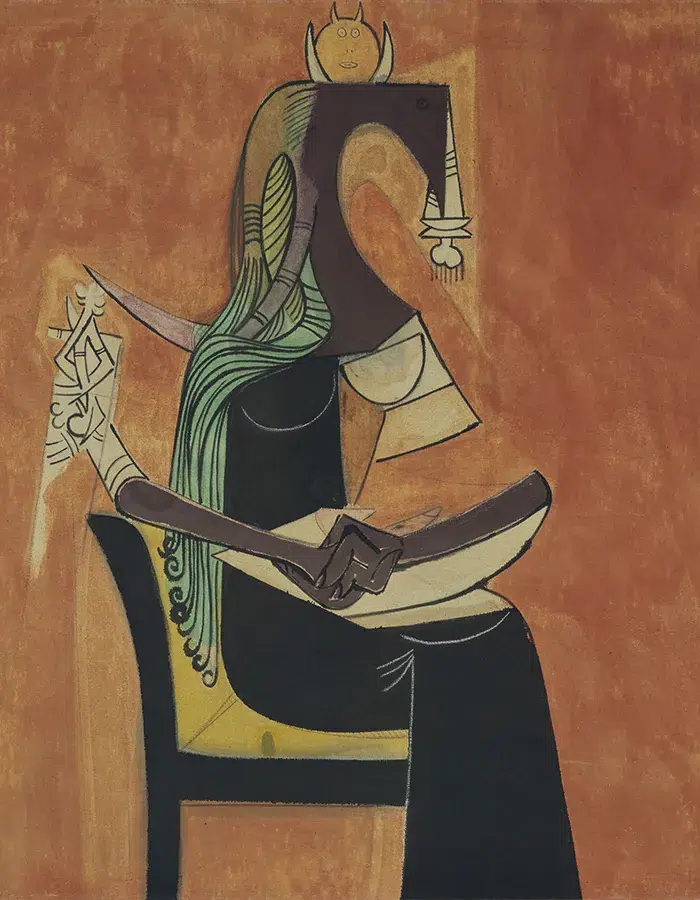Les premières œuvres réalisées en Espagne, marquées par la guerre civile, révèlent déjà un peintre pour qui la forme est indissociable d’un engagement politique. Très tôt, Lam refuse la neutralité moderniste. À Paris, sa rencontre avec Pablo Picasso et André Breton l’inscrit dans le cercle surréaliste ; pourtant, il ne s’y fond jamais complètement. Là où le surréalisme européen puise dans l’« ailleurs » une imagerie souvent fantasmatique, Lam en inverse le regard : il mobilise l’automatisme graphique, le rêve et la métamorphose pour réactiver des mémoires enfouies, des cultures diasporiques reléguées au silence. Les dessins collectifs, les cadavres exquis et les livres illustrés témoignent de cette période de circulation intense des formes et des idées.