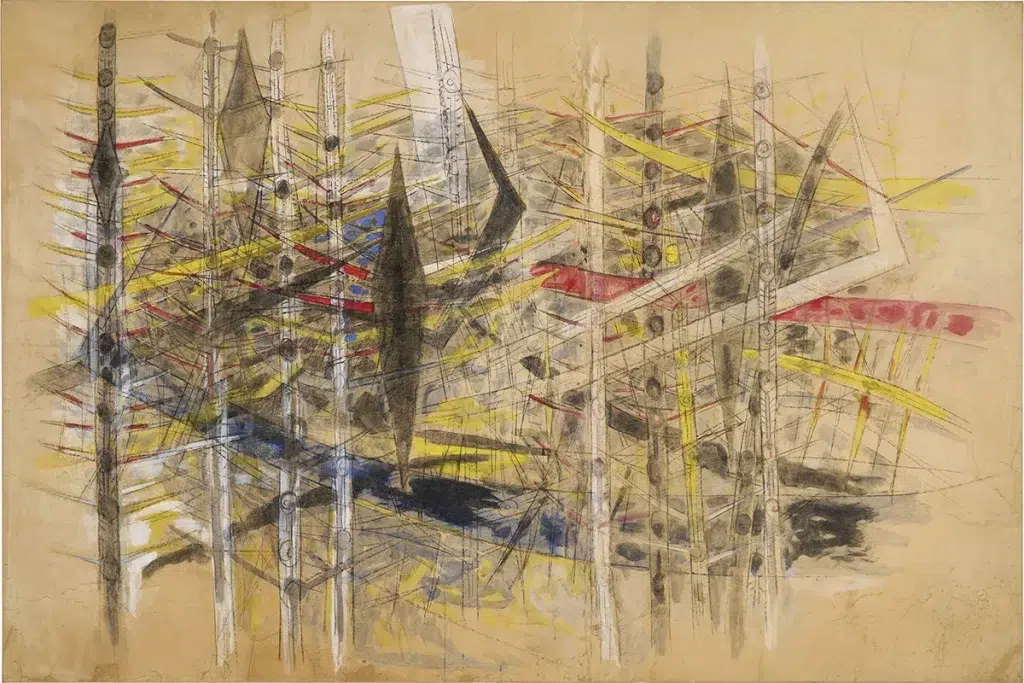 L’exposition montre avec justesse que Lam n’a jamais cessé de se déplacer. À la fin des années 1940, sa palette s’assombrit, la matière se densifie, jusqu’à Grande Composition, œuvre monumentale de 1949, présentée pour la première fois depuis plus de soixante ans. Cette peinture sur papier kraft, d’une ambition formelle exceptionnelle, marque un moment de bascule : l’espace y est saturé de figures abstraites, comme si le corps humain se dissolvait dans un champ de forces.
