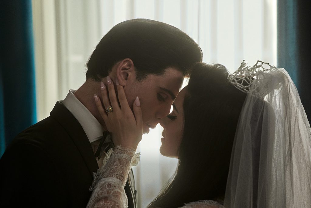 Contrairement à Austin Butler, qui campait Elvis dans le biopic homonyme de Baz Luhrmann tout récemment, Jacob Elordi n’a pas eu à passer le rôle au tamis de l’Actors Studio et des meilleurs maquilleurs et prothésistes d’Hollywood. Il a le Presley naturel. Il faut dire qu’il a le physique du rôle, une légère ressemblance, le menton à peine proéminent et ce visage trop parfait qu’on croirait fait de cire.