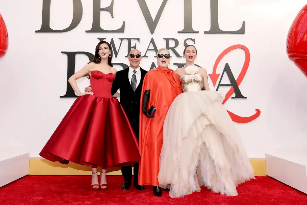 Quant à la première mondiale new-yorkaise, elle était en tout point à la hauteur de l’événement cinématographique de l’année. Meryl Streep a fait sensation en choisissant une création rouge impérial à cape signée Givenchy par Sarah Burton, agrémentée de gants d’opéra et de bijoux David Yurman. C’était un hommage vibrant à son propre personnage, porté avec une précision et une prestance redoutables qui rappellent pourquoi elle reste la reine de Hollywood. À ses côtés, Anne Hathaway et Emily Blunt ont fait crépiter les flashs, respectivement habillées en Louis Vuitton et Schiaparelli, affirmant leurs statuts d’icônes de mode mondiales. Le film n’était pas encore projeté sur l’écran géant que le tapis rouge avait déjà tout dit de l’ambition de cette suite : la légende est intacte, le style est souverain, et Miranda Priestly n’a pas fini de nous glacer le sang d’un simple regard.