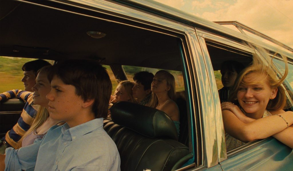 Évoquant, en flirtant presque avec le surnaturel, les mystères de l’adolescence et les fissures de l’Amérique WASP dans ses banlieues parfaites, Virgin Suicides a quelque chose du cinéma de David Lynch. Dans le gazon impeccablement entretenu des Lisbon, cette famille légèrement plus pauvre que leurs très riches voisins, il y a un peu de Blue Velvet. Le spleen du personnage de Kirsten Dunst évoque celui de Kyle MacLachlan dans ce film de 1986, qui cherche aussi un sens à sa vie. Et sa mort inexpliquée, juste après avoir été primée reine du bal de promo, rappelle celle tout aussi étrange de Laura Palmer, la star du lycée dans la série Twin Peaks.