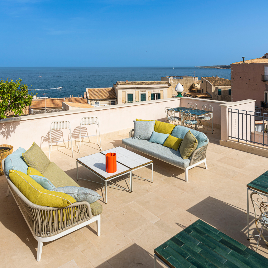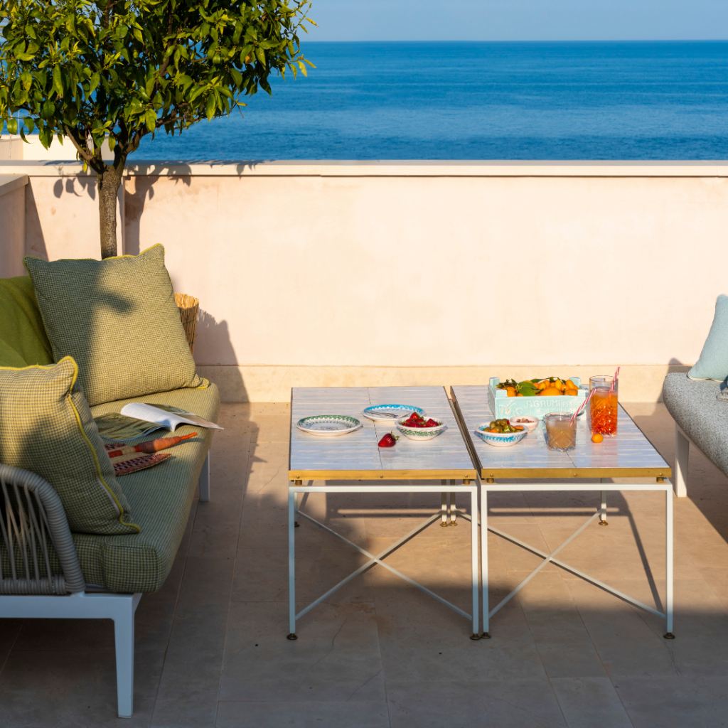 Puis, de concert, elles sont tombées sous le charme de l’un des palazzino, de ses murs de pierres blondes, de sa cour ombragée, de son rooftop avec vue sur la mer. Plutôt que d’en faire leur maison de vacances familiales, leur première idée, Prune a décidé de le transformer en hôtel intimiste. Elle a signé elle-même la décoration avec les meilleurs artisans locaux.