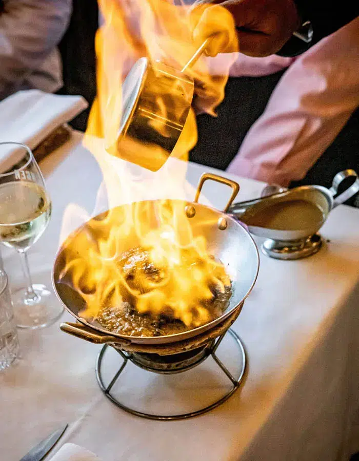 Sous la coupole de verre de Bofinger, non loin de la Bastille, plane l’âme d’une autre époque. Fondée en 1864, l’une des plus anciennes brasseries parisiennes célèbre l’Alsace avec faste : choucroute signature servie dans son cuivre étincelant, kouglof et flammekueche. Sans oublier les fruits de mer, avec le homard flambé au whisky qui fait danser la flamme sur le métal. On savoure ensuite un munster AOP suivi d’une forêt-noire revisitée. Et on pourra terminer sur une note glacée chez Procopio, voisin historique et doyen des glaciers parisiens. Les tarifs suivent ceux d’une brasserie parisienne de renom, en adéquation avec l’adresse et le soin apporté à la cuisine.
