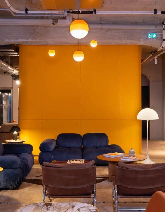 Au 11, rue de Poissy, l’hôtel Pilgrim, dernière création du groupe Ginto, insuffle un vent rétro-chic au cœur du 5e arrondissement. Entre béton brut, velours profond et mobilier vintage, le décor signé Cyril Durand Behar mêle esprit brutaliste et douceur bohème. Le grand salon, baigné de lumière, s’ouvre sur une terrasse ornée d’une fresque de Redfield & Dattner – un espace de vie agréable à toute heure, du café du matin au cocktail du soir.