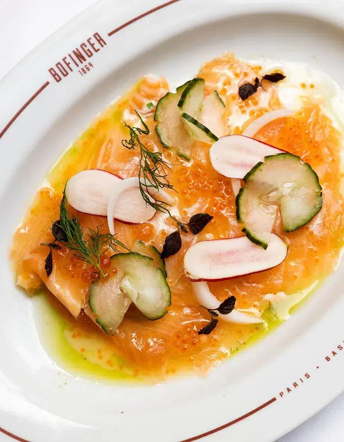 Place des Ternes, La Lorraine reste l’une des grandes dames de la mer. Sous ses plafonds Art déco, les huîtres s’ouvrent sur des nappes immaculées et la lumière du midi glisse sur l’argent des plateaux. Les œufs mimosa, coiffés d’œufs de saumon, précèdent une daurade grillée aux légumes juste saisis, simple et parfaite. En dessert, crème brûlée bourbon et île flottante rappellent les saveurs de l’enfance avec élégance. Ici, la mer devient une promesse d’équilibre – la tradition sans lourdeur, la générosité sans excès. Une adresse où la qualité des produits et la maîtrise des classiques se reflètent naturellement dans le positionnement haut de gamme.