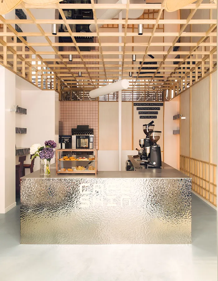 Entre les colonnes du Palais-Royal et les boutiques feutrées de la rue de Richelieu, Café Shin déploie un charme singulier, à mi-chemin entre Paris et Séoul. Pensé par Shin Eun Jung et Julien Sebbag, ce second lieu prolonge l’esprit du coffee shop originel : un refuge du quotidien, aussi calme qu’inspirant. Le décor signé Uchronia joue la carte du contraste : inox martelé, briques rosées et plafonds miroirs se mêlent à la douceur du bois clair. À l’étage, on vient pour un latte crémeux, un kimbap ou un bingsu aérien choco-banane ; en contrebas, le café se transforme en listening room où l’on écoute une très bonne playlist. Quand la musique et la cuisine sont bonnes, on savoure pleinement, d’autant plus qu’ici, le plaisir reste accessible.