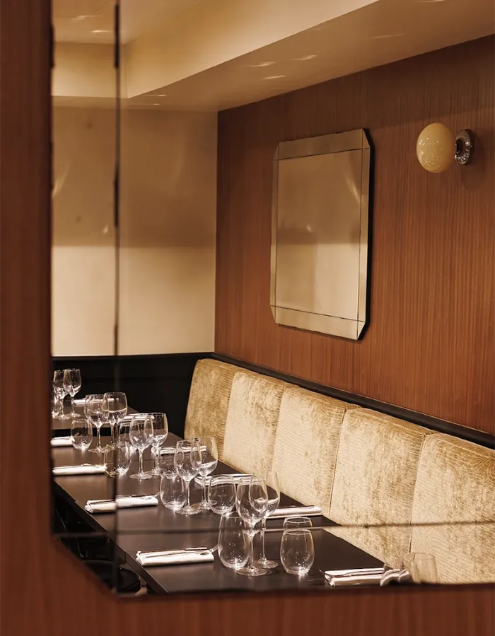 Installé dans l’ancien atelier de gravure du passage des Panoramas, Stern Ristorante a été restauré par Philippe Starck dans le respect de son héritage, en conservant notamment ses boiseries patinées, qui instaurent un dialogue subtil entre patrimoine industriel et design contemporain. Fondé en 1834 par Moïse Stern et Anselme Aumoitte, le lieu a su préserver une atmosphère feutrée, presque cinématographique. L’atelier d’origine comptait parmi ses clients l’Élysée, de nombreuses ambassades, des familles de l’aristocratie internationale, ainsi que de grandes entreprises françaises et étrangères qui lui confiaient l’impression de leurs cartons d’invitation, menus et cartes de visite.