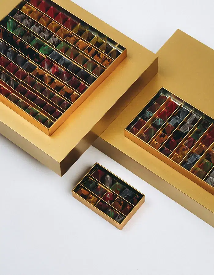 Ouverte en 2022, la chocolaterie Jade Genin se distingue par son décor épuré aux tons blancs et dorés, conçu avec le designer Khaled Kolsi. La boutique, ouverte sur l’atelier visible depuis la rue, met en scène la fabrication artisanale dans un esprit de transparence.