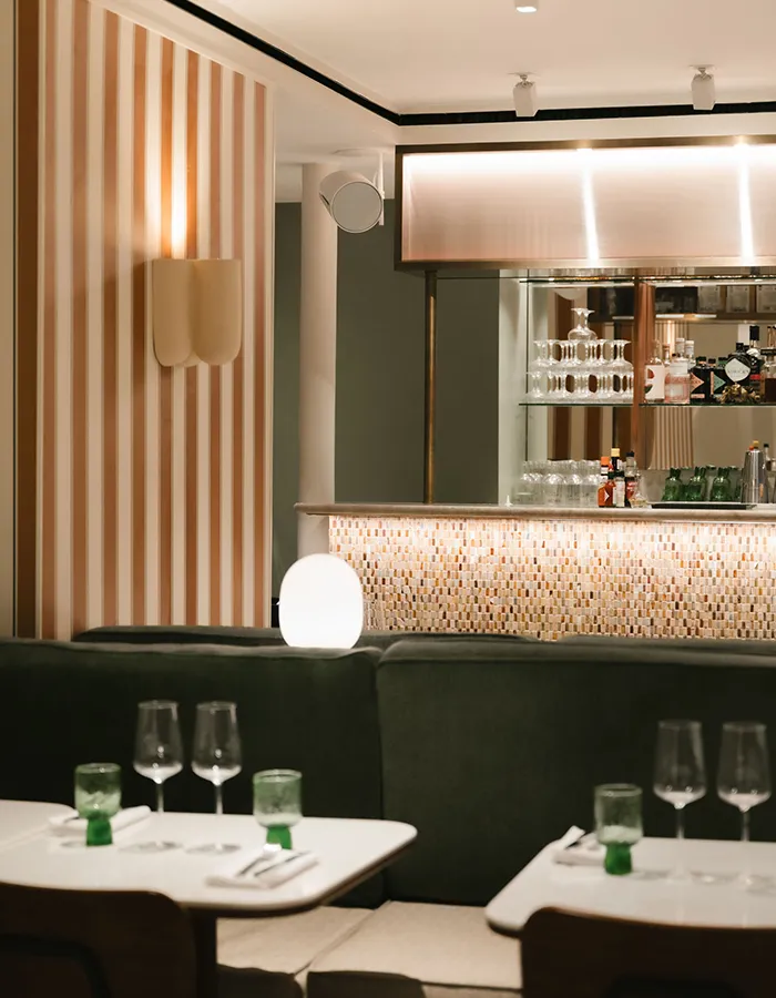 Pensé par l’architecte Claire Bourgeois Linglart, le décor revisite les codes de la brasserie parisienne avec élégance : bois sombre, banquettes en velours et cuisine ouverte composent un lieu chaleureux et structuré en plusieurs espaces. Ouverte toute la journée, l’adresse se veut un véritable lieu de vie de quartier, avec une formule déjeuner renouvelée chaque semaine et une sélection de vins d’environ 80 références.