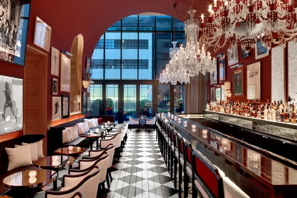 Enfin, pour une expérience résolument glamour, le Bar du Baccarat Hotel, idéalement situé juste en face du MoMA, incarne le luxe new-yorkais teinté d’élégance française. Lustres majestueux, cristal scintillant, décor somptueux : le lieu impressionne dès l’entrée.