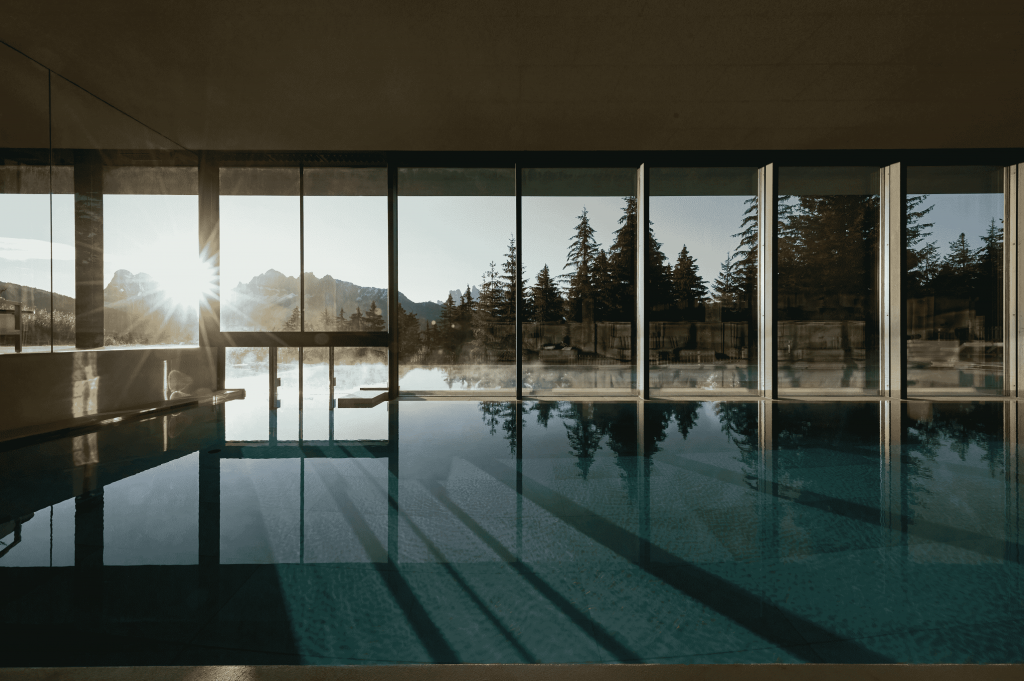 Forestis, c’est la version chic et design du refuge de montagne, perché à 1 800 m d’altitude. Ce nouveau membre de la chaîne Small Luxury Hotels of The World ressuscite un ancien sanatorium datant de 1912 : un très ambitieux projet à l’origine, confié par la monarchie austro-hongroise à l’architecte Otto Wagner, maître de l’Art nouveau, connu pour avoir changé le visage de Vienne. Mais après le décès de celui-ci et le déclenchement de la Première Guerre mondiale, une bâtisse plus modeste a finalement été édifiée. Longtemps abandonnée, elle a été transformée en hôtel en 2010 par Alois Hinteregger. Son fils Stefan l’a ensuite reprise et rénovée et a décidé de lui adjoindre une extension contemporaine, réalisée par l’architecte Armin Sade en verre, bois et pierre de la région, le Sud-Tyrol, neutre en carbone et chauffée aux énergies renouvelables. Ses lignes déstructurées évoquent les sommets dentelés qui l’entourent : une esthétique forte qui impressionne aussi de l’intérieur, des 62 chambres, suites et penthouses, de la terrasse du restaurant locavore du chef Roland Lamprecht qui revendique une « cuisine forestière », ou encore du spa de 2 000 m2 complété par une impressionnante piscine dedans-dehors comme suspendue dans le vide.