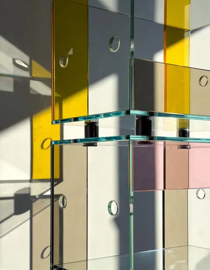 Ce duo d’artistes avoue un amour pour la recherche et la composition, à la croisée entre l’art et le design, ils créent toute sorte d’objets du quotidien : luminaire, étagère, table basse, cendrier, siège, … Les couleurs sont douces et souvent primaires, ils ont une approche artistique sophistiquée et d’une subtile originalité dans la texture et la forme. À l’occasion de la Design Miami. Pairs, ils ont travaillé avec des feuilles de verre industrielles façonnées au four et assemblées à froid. Le totem prend vie grâce à ses couleurs, son effet de transparence et les reflets, mais il peut aussi se démanteler et se transformer en boîtes ou en bureaux.
