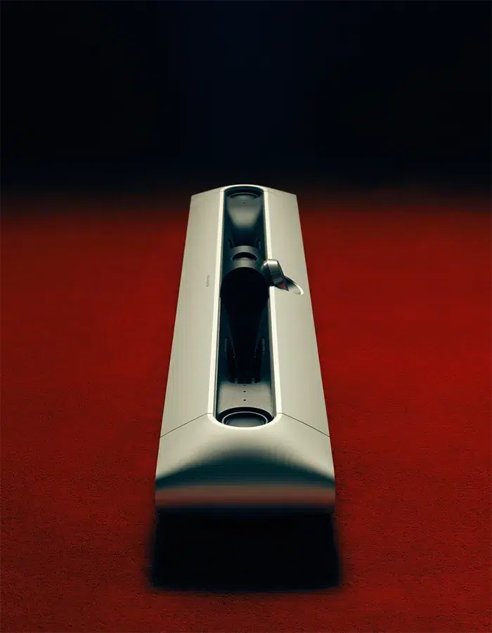 La nouvelle barre de son Beosound Premiere, véritable sculpture tridimensionnelle en aluminium pur, impose sa présence. Sa coque monobloc sablée intègre la technologie brevetée Wide Stage Technology pour sculpter un champ sonore d’une profondeur inédite. Chaque détail est un hommage à l’artisanat, à l’image du tweeter central orné de 1925 microperforations, un clin d’œil subtil à l’année de fondation de la marque. Pour les collectionneurs, une version Haute Edition limitée à 25 exemplaires pousse le raffinement à son paroxysme avec un motif fraisé durant dix-sept heures, traduisant visuellement l’énergie du son en ondes d’aluminium.