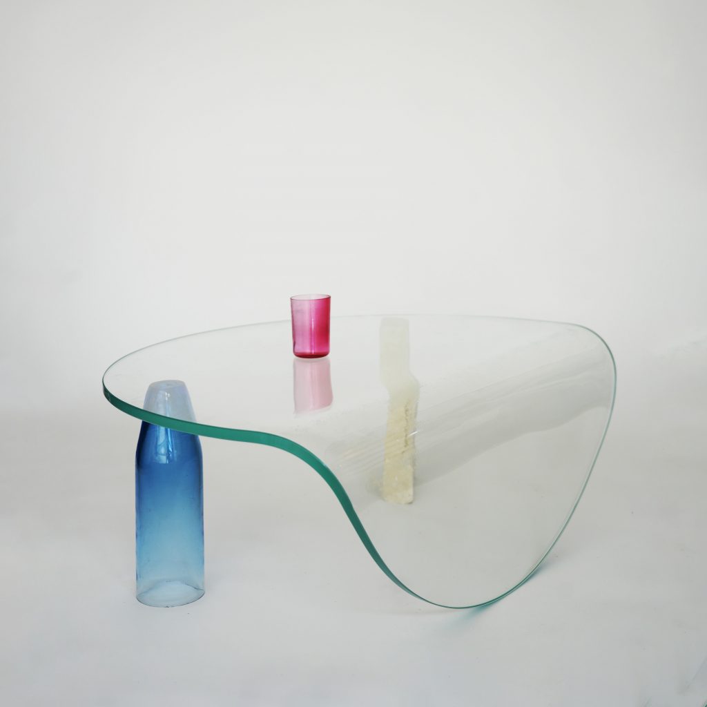 Designer française diplômée de l’École nationale supérieure des arts décoratifs de Paris et formée à la School of Visual Arts de New York, Sophia Taillet est à cheval entre le monde du design et celui de l’art, explorant la matière comme un biais créatif. À l’occasion de la dernière Paris Design Week, la créatrice a présenté la Melting Table. Captivée par la flexibilité du verre en fusion, elle a travaillé une feuille de cette matière qui est venue progressivement se courber et se poser au sol, créant ainsi un point de contact entre sa surface et son support.