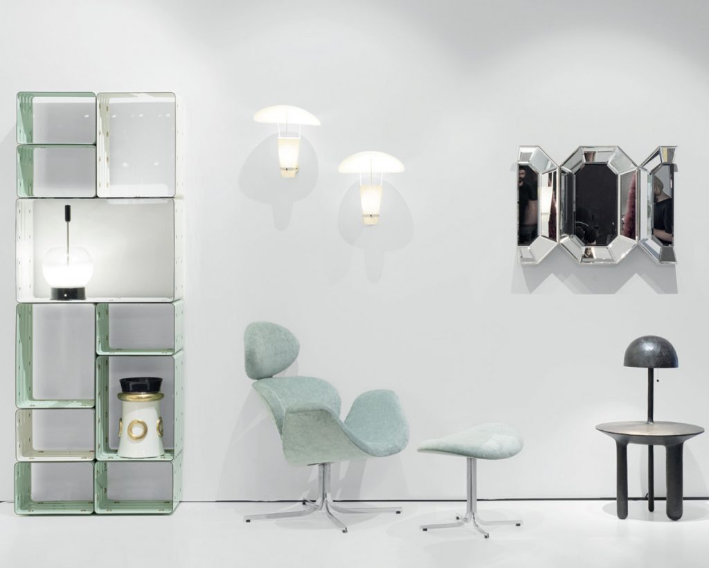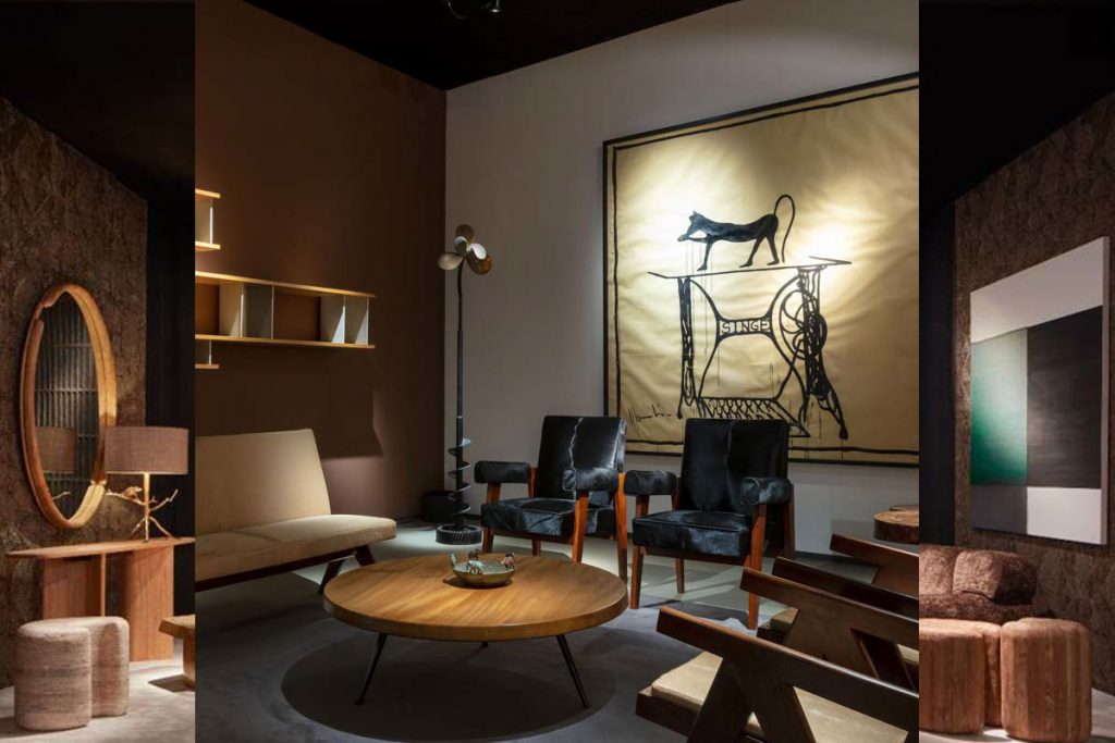 Cette année, la Galerie Downtown a mis à l’honneur le travail de l’artiste français Richard Texier. Parmi les pièces présentées, le lampadaire Savana Circus ou bien encore le chandelier Aquatic Candelabra. Inspirées par l’univers de la faune et de la flore, ses créations sculpturales obéissent aux lois de l’hybridation. Et pour cause, ce passionné de zoologie traduit par le biais de son art son addiction aux forces de la nature tout en célébrant la beauté du monde. Le PAD était également l’occasion pour la Galerie Downtown de présenter d’autres pièces conçues par les grands noms de la discipline comme Pierre Jeanneret, Jean Prouvé, ou encore Charlotte Perriand avec sa célèbre bibliothèque Maison du Mexique produite en 1952.