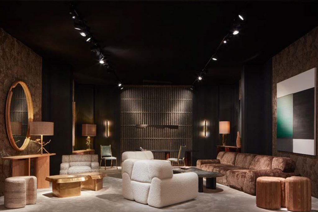 Se définissant comme un ensemblier dans la grande tradition des arts décoratifs français, l’architecte de formation Thierry Lemaire est reconnaissable à son style intemporel, élégant et confortable dans des projets exclusifs d’architecture intérieure ou de décoration, où sont associés des matériaux bruts et sophistiqués. Officiant aussi bien pour les lieux publics que les hôtels et restaurants, il dessine également du mobilier pour de grandes maisons de luxe. À l’occasion du PAD, le créateur a présenté en exclusivité les toutes dernières créations de sa collection de design. Parmi elles, les fauteuil et canapé Gio, le fauteuil S27, le miroir Leeba, les guéridons Vezza, les consoles Pit, Malagnou et Canala, ou encore la table basse Kawete.