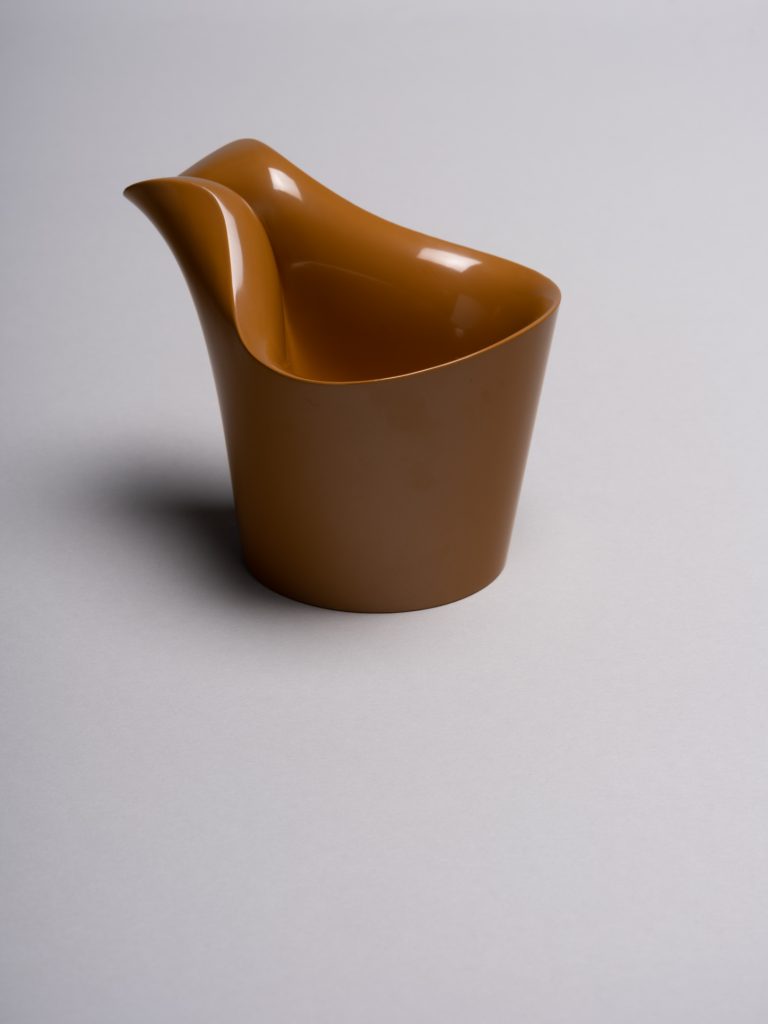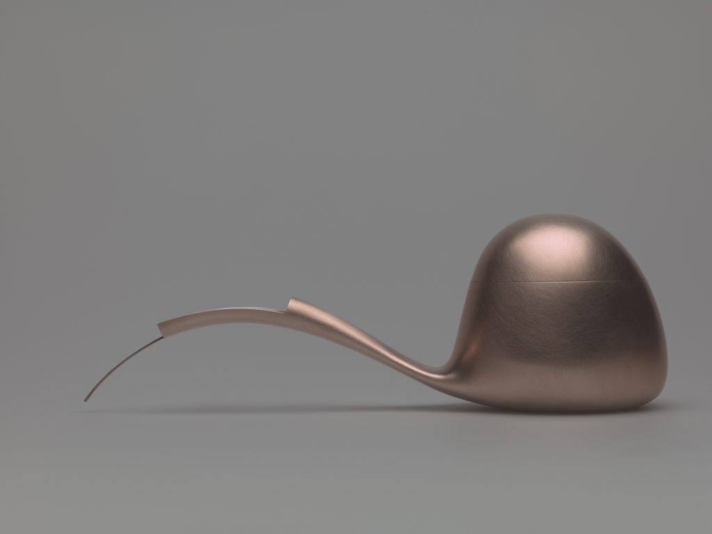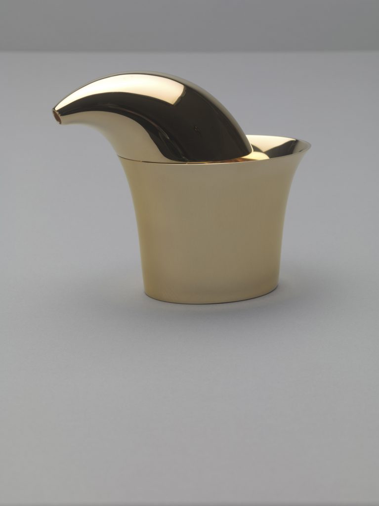 Invité par la vénérable maison Puiforcat à concevoir un service à thé, Aldo Bakker livre avec Horn sa propre interprétation du crémier : une simple timbale coiffée d’un bec, mais en or, s’il vous plaît.