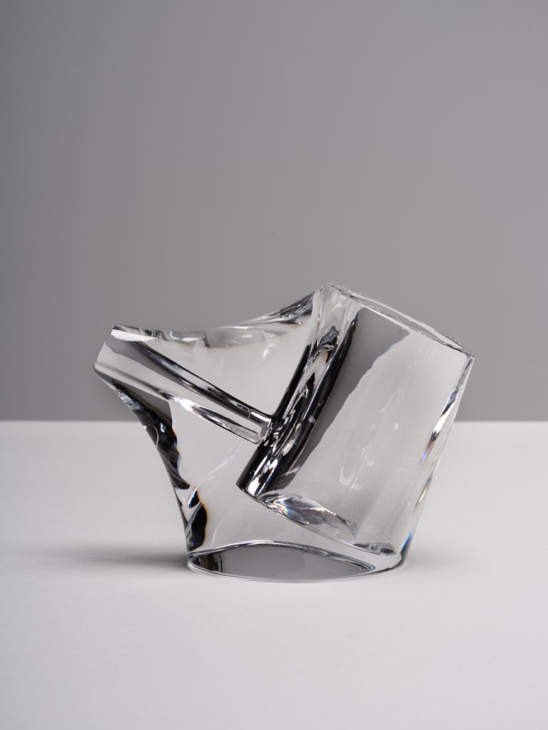 Faite de cristal, cette pièce délicate peut aussi bien contenir des liquides précieux comme du vin ou du saké que de la sauce soja, de l’huile ou des infusions. Si l’ustensile était déjà disponible en porcelaine, en verre coulé au four et en pierre, cette version en cristal fait quasiment disparaître l’objet pour ne laisser place qu’à la forme du liquide contenu.