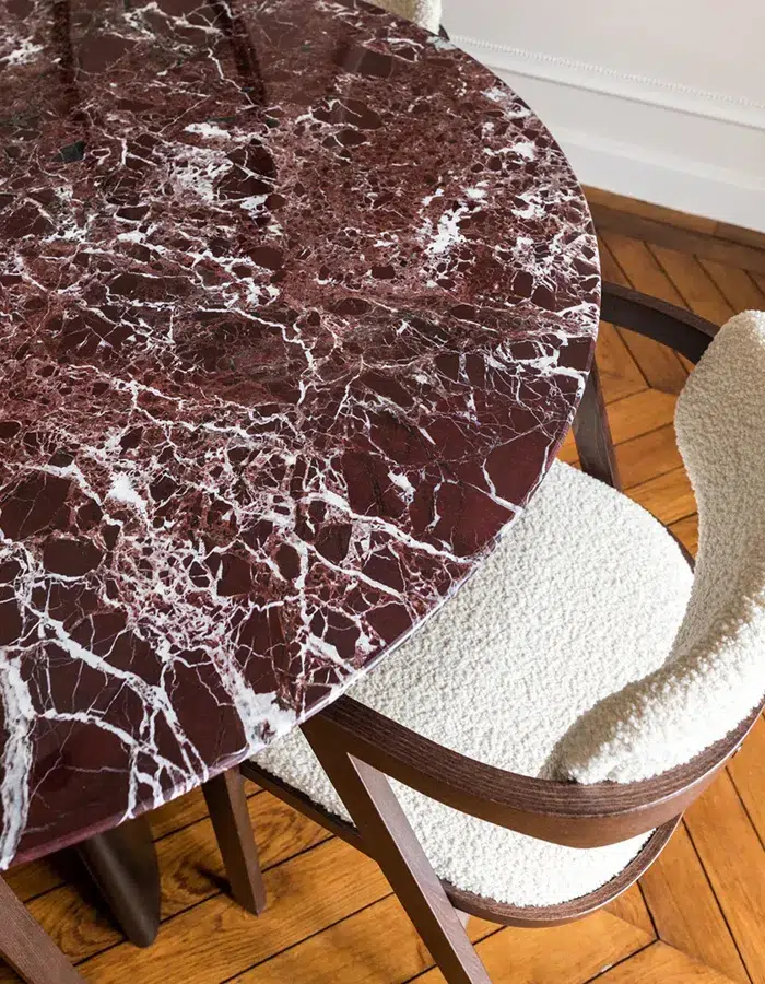 Ni tout à fait violet, ni vraiment bordeaux, le ton aubergine apporte cette nuance intrigante qui réconcilie la profondeur des tons sombres et la sensualité des teintes chaudes. Longtemps perçue comme trop forte ou trop sérieuse, cette couleur s’impose aujourd’hui dans les intérieurs contemporains comme un signe d’assurance tranquille. Loin du cri chromatique, elle séduit par son élégance sourde et sa capacité à dialoguer aussi bien avec le bois blond qu’avec l’acier brossé, le béton ou le verre dépoli.