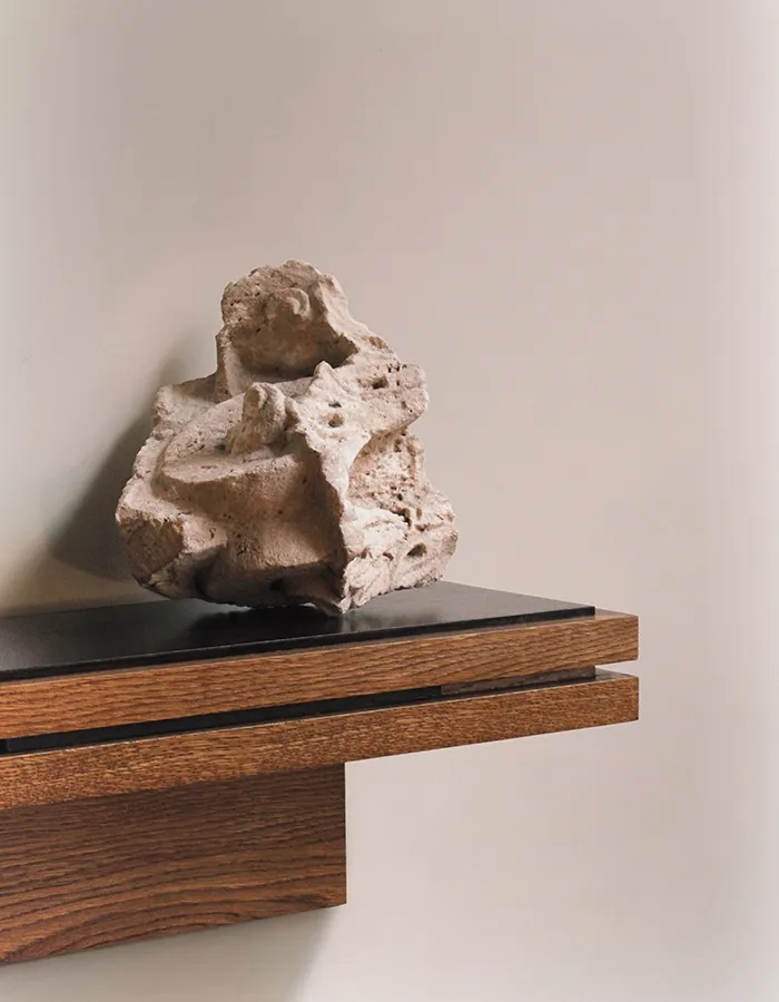 S’il est une préoccupation centrale dans la démarche de Coutansais Castillo, c’est bien la recherche d’une forme d’intemporalité, aussi bien dans le mobilier que dans l’architecture intérieure qu’ils conçoivent. Leur démarche s’appuie sur une trame volontairement minimaliste, structurée par des volumes pouvant évoquer ceux de l’Art déco. Sur cette base maîtrisée viennent ensuite se greffer des détails volontairement anachroniques, introduits pour en perturber la lecture, notamment à travers les matières employées, tel le chêne massif.