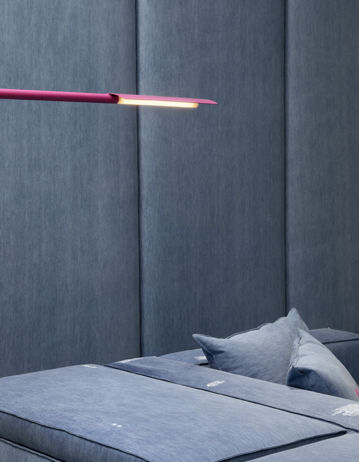 Avec l’exposition « Denim », il donne vie à un appartement par le biais de « micro-environnements », une collection de systèmes modulaires faits de plusieurs éléments dissociés et interchangeables. Ainsi, le « Sofa Pool » est un espace dédié à de multiples tâches comme le repos, le travail ou les repas.