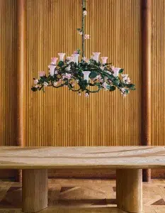Sur le coussin soutenu par deux pales courbées en bois, le tissu « Croisé Collobrières » de Pierre Frey est apposé. Une pièce textile qui selon la designer est « chargée d’histoire ».