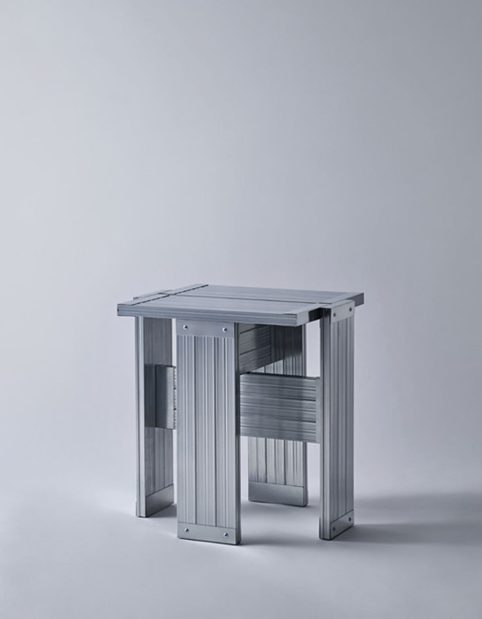 Avec cette idée en tête, l’équipe de Daisuke Yamamoto a mis en lumière le LGS (Lightweight Gauge Steel) ou acier de calibre léger, un matériau de construction très employé, notamment dans les systèmes de charpente. Ces éléments de construction post-démolition ont ensuite été récupérés et réutilisés pour donner naissance à d’élégantes pièces de mobilier, avec un nombre minimum de composants.