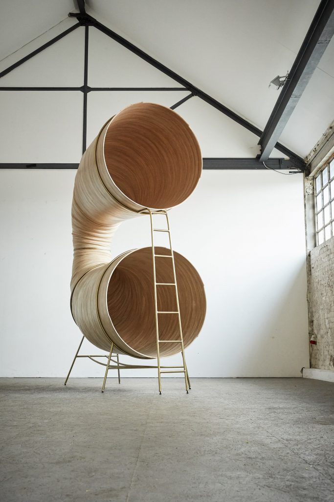 Une autre série du designer nous a fortement intrigués : ressemblant à la coquille d’un escargot géant, « o. T » invite les spectateurs qui y pénètrent à vivre une expérience qui éveillera tous leurs sens. Composée de deux entrées, l’œuvre fonctionnelle invite à entrer dans un dialogue, de quelque manière que ce soit. « o. T » incite alors les spectateurs à suggérer diverses façons de l’utiliser, modelant ainsi de manière collaborative la signification de l’objet au cours de leur interaction.