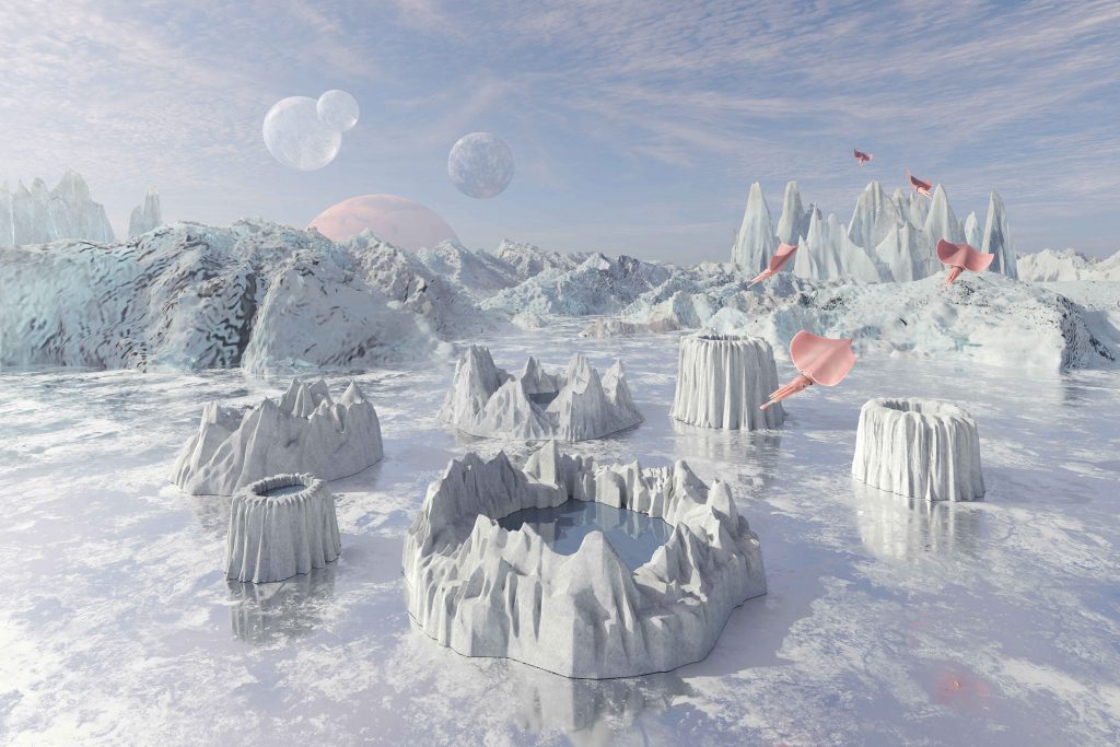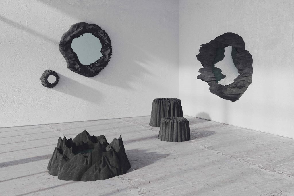 Les pièces à la fois énigmatiques, fonctionnelles et poétiques du designer et architecte libanais Richard Yasmine sont des évocations de la croûte terrestre. De la table au luminaire en passant par le miroir, l’installation Silent Hollows cherche à recréer un décor interstellaire ou une scénographie céleste via une réalité tridimensionnelle. Une expérience qui emporte le spectateur d’un paysage planétaire dramatique à un paysage mystique alternatif célébrant le voyage à travers des sensations virtuelles. Par cette expérience, le designer nous invite à libérer de notre attachement à la matière, à y plonger profondément en immersion totale.