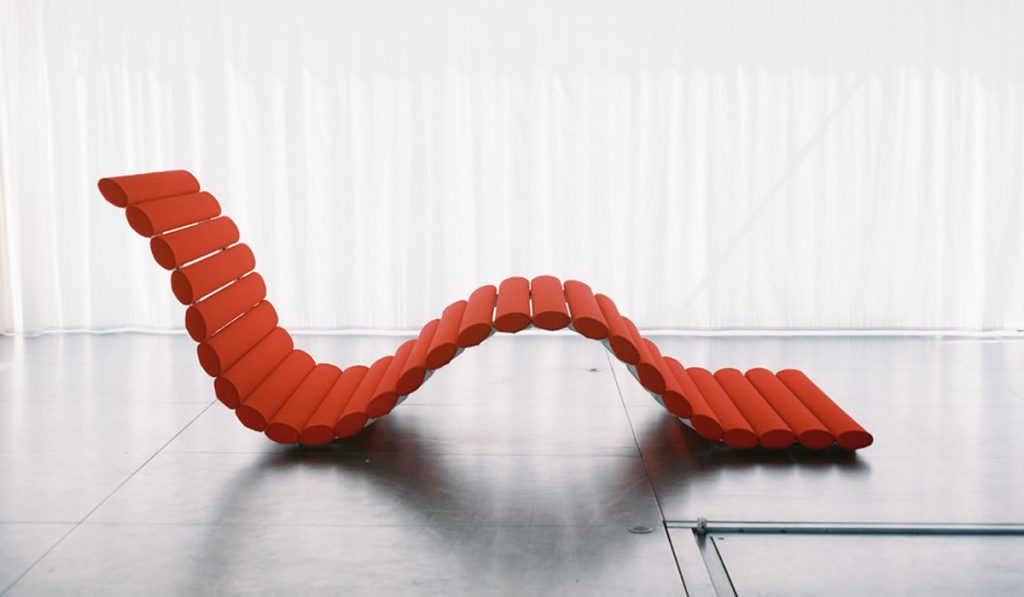 des configurations multiples, ce mobilier modulaire crée un « paysage habitable » aléatoire ondoyant et mouvant. Un espace de vie sur mesure prônant un nouvel art de vivre dont six maquettes déclinent les configurations possibles des modules tandis que c’est le Modèle 5 du Programme Paulin que l’exposition met en scène. Aux lignes ondoyantes du pavillon Niemeyer répondent les « formes libres » et sensuelles imaginées par Paulin pour décloisonner l’espace. Outre les systèmes d’étagères modulables, du Tapis Siège (1968) aux modules organiques de l’Ensemble Dune (1970), les pièces témoignent de la vision éminemment moderne, non statique, de l’espace chez Paulin : tel un origami géant, le sol se plie et s’articule pour qu’on s’y assoie…